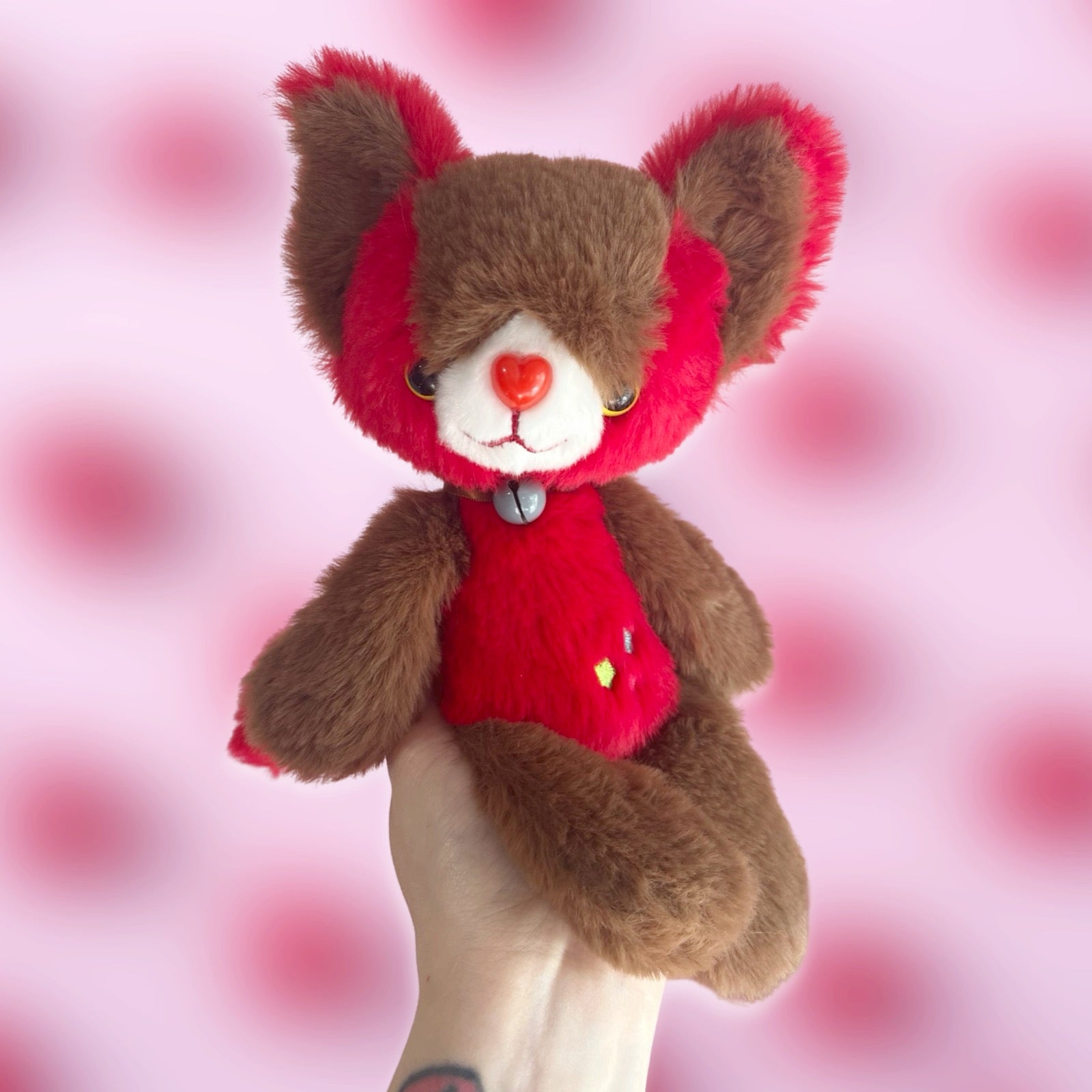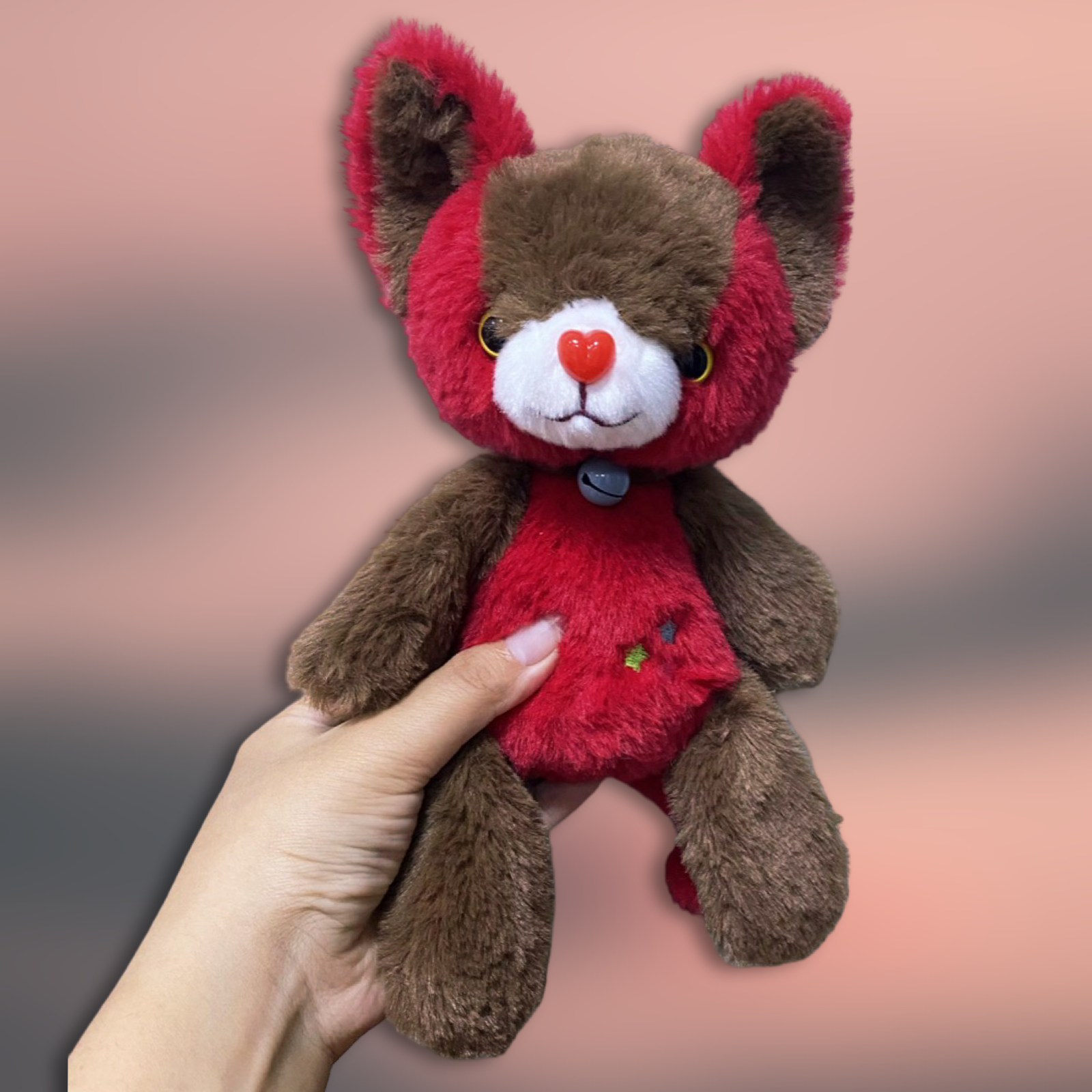 - Super soft cuddle plush fabric. Plastic safety eyes and nose and embroidery mouth and belly accents. Brass bell accent.